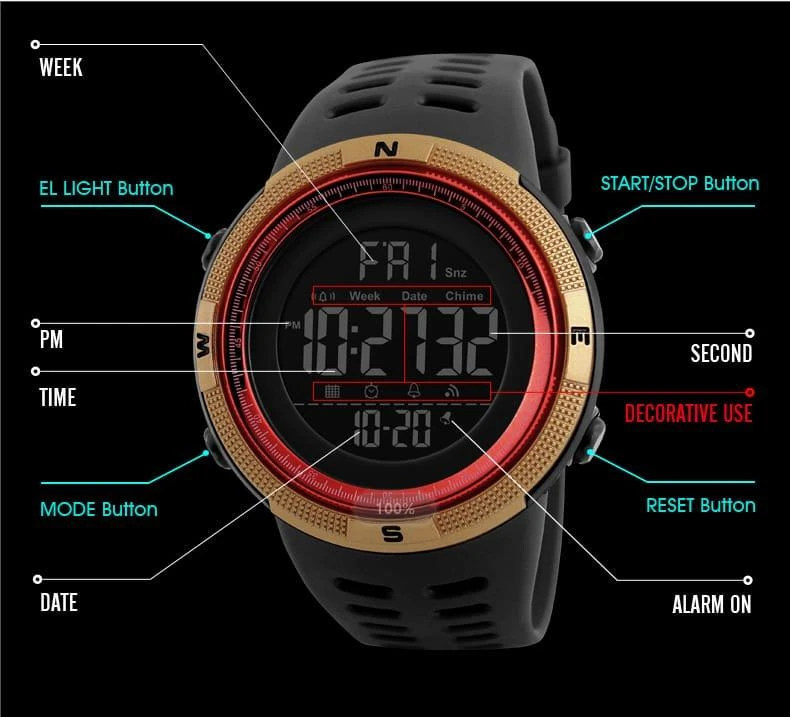 What’s in the box 1 x Taixun Multi-function Outdoor Sports Waterproof Men’s Digital Electronic Watch
