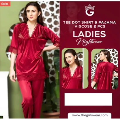 Tee Dot Shirt & Pajama Viscose 2-Pieces Nightwear For Girls & Women – Maroon