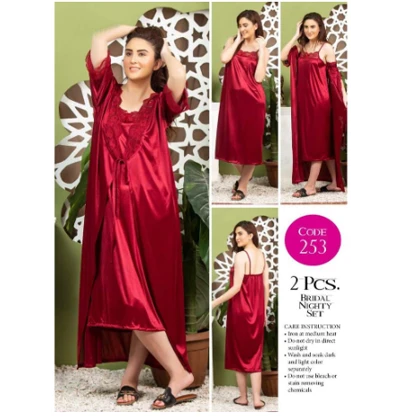 Tee Dot Viscose 2-Pieces Bridal Nightwear With Gown For Girls & Women – Maroon