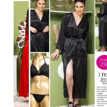 Tee Dot Viscose 3-Pieces Bridal Nightwear For Girls & Women – Black