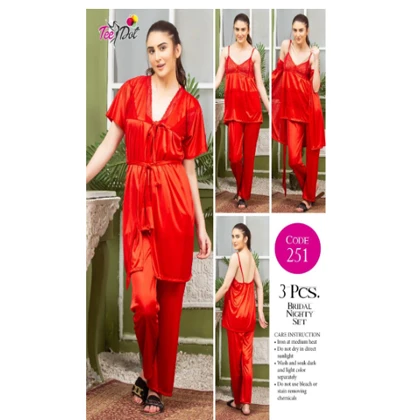 Tee Dot Viscose 3-Pieces Bridal Nightwear For Girls & Women – Red