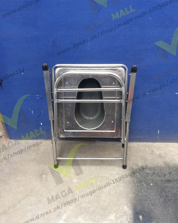 This commode easily opens and folds, and will fold flat for convenient storage and transportation