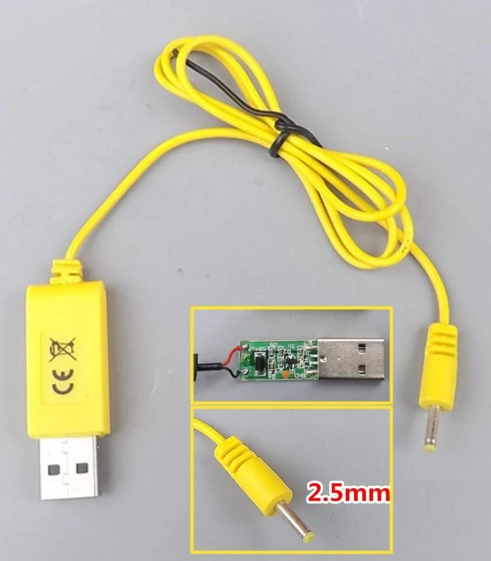 USB 3.7V battery charger 2.5mm jackMaximum current is 300mA, and cable length is 55CM. Balanced charging 4.2VThe USB terminal has a charging indicator light. When charging the indicator light does not light. When the battery is fully charged, the indicator light is on.Instruction:1.When connect to computer without battery and the LED is on,that means it will be off when charging.2.When connect to computer without battery and the LED is off,that means it will be on when charging.3.Do not use or charge the battery when it is hot.