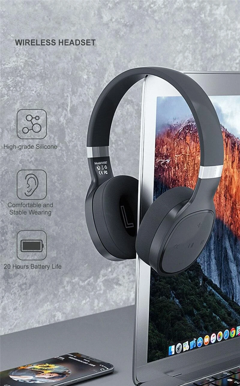 Product Parameters:Model: VJ087How To Use: Head-MountedBluetooth Version: Bluetooth 5.0Bluetooth Solution: Jie Li SolutionSupport Range: 2.402-2.480GHZConnection Distance: 10MSpeaker Size: 40MMImpedance: 32ohmSensitivity: 118+/-3db@1KHzFrequency Response: 20HZ-20KHZCapacity: 3.7V/400 MAUse Time: 8-10hCharging Time: 2 HoursStandby Time: 220 HoursProduct Weight: 300gPacking Box Size: 19*7.2*21 CmPacking List:Bluetooth Headset*1Charging Cable*1Audio Cable*1Manual*1