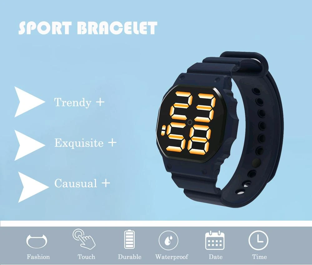 Product details of Waterproof Sports Watch For Men Women LED Digital Touch Watch Silicone Strap WristWatch.