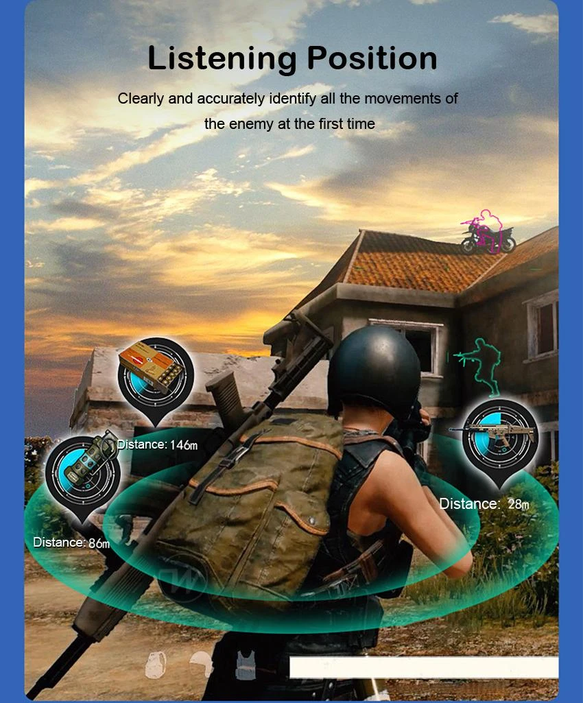 Bluetooth 5.0: The Bluetooth headset uses the latest Bluetooth 5.0 chip. Stable data transmission and wide wireless coverage. No delay when playing gamesοΌidentify enemy orientations and Control the Whole Games