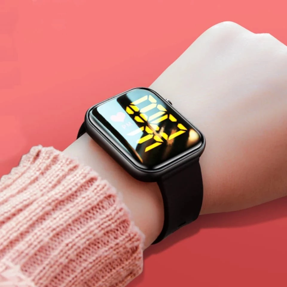 BoysβΊKid's WatchesβΊWatches Bags JewelleryβΊY1 waterproof Led watch Black trendy square Watch for unisex boys and girls smart band New stylish watch led square watch smart band digital led watch 2021 for unisex