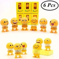 Pack Of 6 Small Emoji Spring Shank Head Doll Cute Stress Relief Toy Key Buckle Gift Car Decor