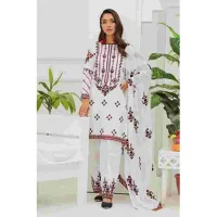 3PC Lawn Embroidered Shirt With Silk Zari Dupatta -BFSIN788 (B)