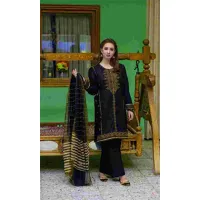 CHICKEN KARI 3PC Heavy Embroidered Shirt With Embroidered Bamber Chiffon Dupatta – BFAD834 (B)