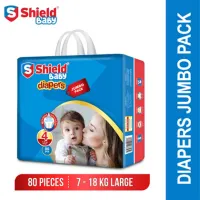 Shield Baby Diapers Jumbo Pack Size 4 Large (7-18Kg), 80 Pcs