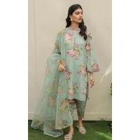 Baroque – 3PC Lawn Printed Shirt With Organza Printed Dupatta