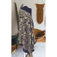 BareezΓ© DC-108 Blue Fully Embroidered Heavy Stuff Karandi Shawl