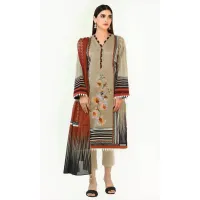 Baroque – 3PC Linen Neckline Embroidered Shirt With Linen Printed Duppata