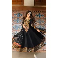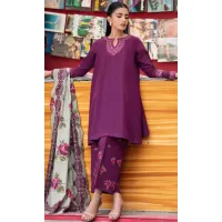 3PC Shirt Neckline Embroidered with Printed Chiffon Dupatta (D)