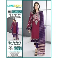 3PC Lawn Shirt Heavy Embroidery with Embroidered Bamber Chiffon Dupatta (D)