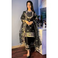 Nadia Farooqi – 3PC Organza Embroidered Shirt With Organza Embroidered Dupatta