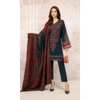 Nishat – 3PC Dhanak Heavy Embroidered Shirt With Printed Shawl